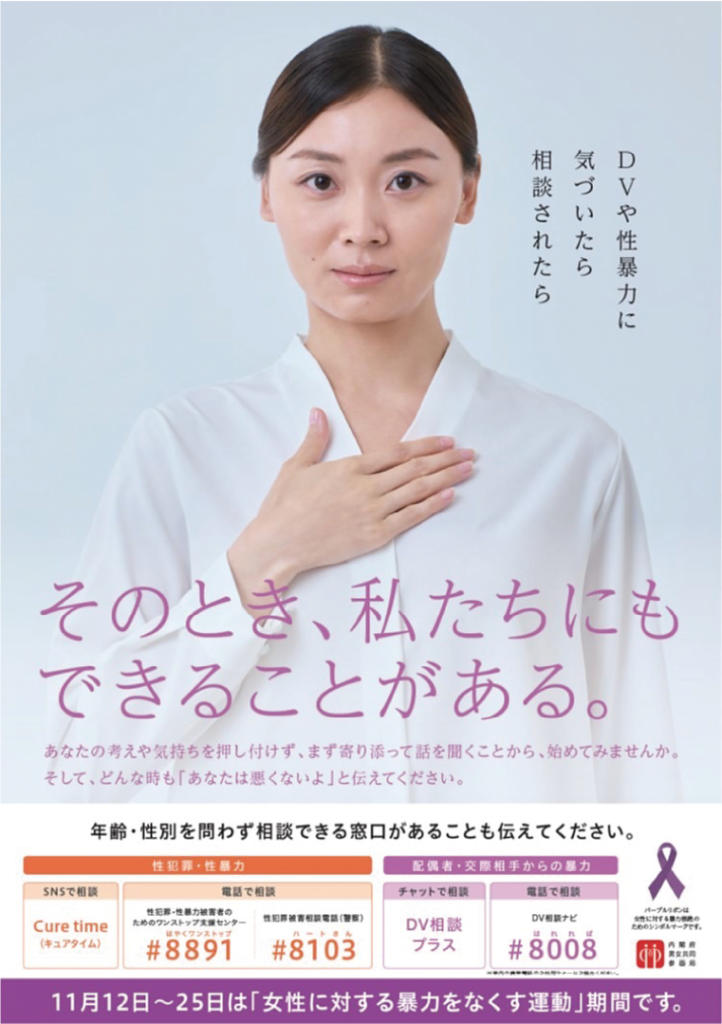 女性に対する暴力根絶や犯罪被害者への支援などの啓発ポスター、パンフレット、書籍などの展示