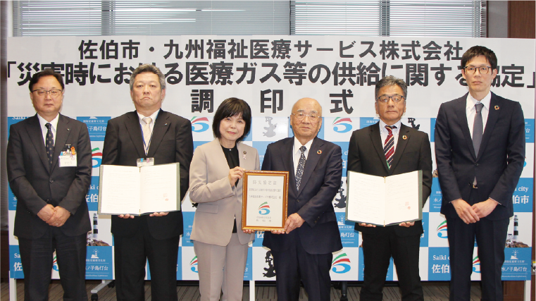 2/25(水) 災害時の医療救護活動を円滑に遂行するために不可欠な医療酸素及び資機材などの供給体制を構築することを目的に、九州福祉医療サービス株式会社と協定を締結しました。 冨髙市長は「この協定締結により、大切な市民の命を守ることにつながる」と救命率の向上が期待されます。