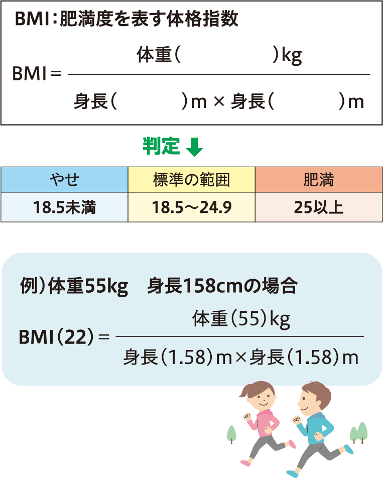 適正体重を保つためにはバランスの取れた食生活、運動習慣が大切です。