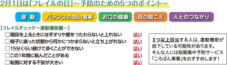 2月1日は「フレイルの日」~予防のための5つのポイント~