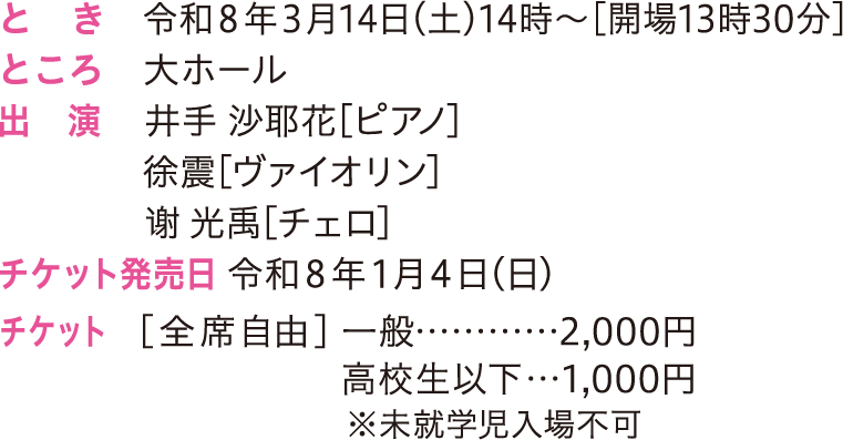 ※入場整理券の配布は12月8日(月)からさいき城山桜ホール受付窓口で行います。(お1人様各回2枚まで)