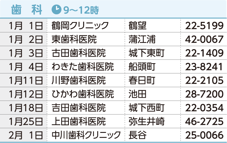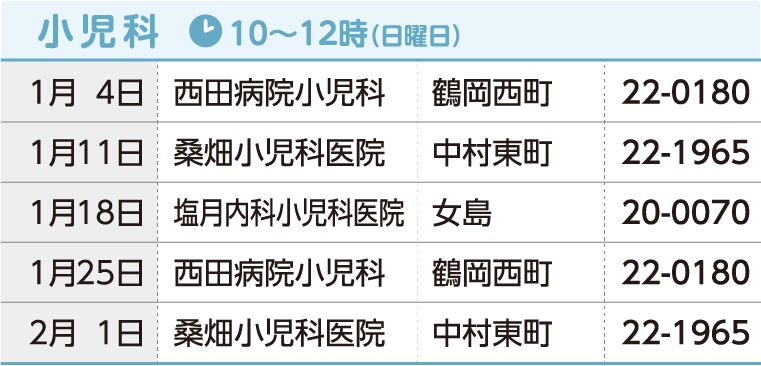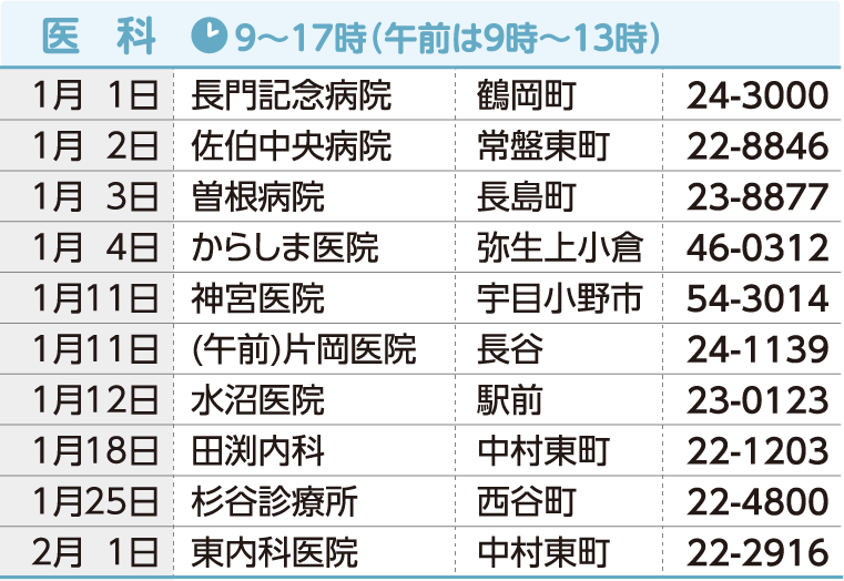 ※当番医は変更される場合もあります。事前に佐伯市医師会救急情報センターで確認をお願いします。